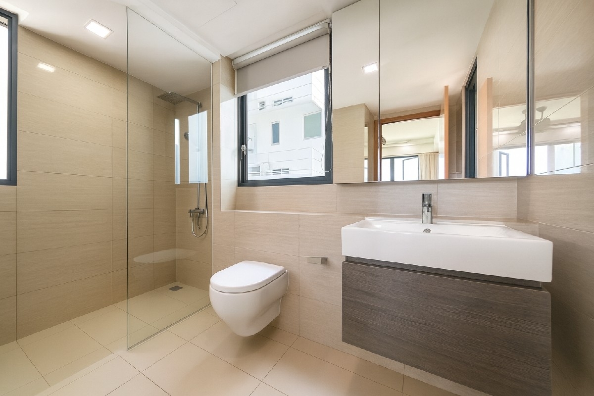 The unit features three bedrooms and two bathrooms, complemented by a utility room and a small laundry yard for added convenience. The living hall boasts a wide frontage, creating a bright and airy atmosphere with excellent ventilation. The balcony faces a landed enclave, offering unblocked views and a serene environment.